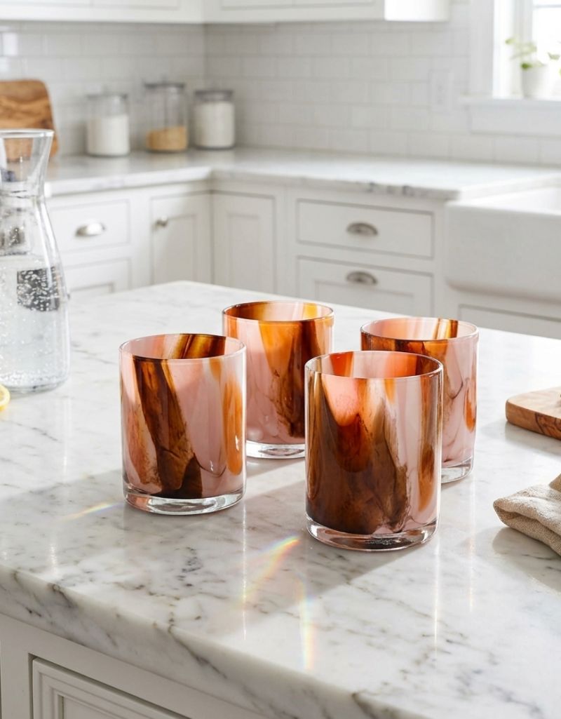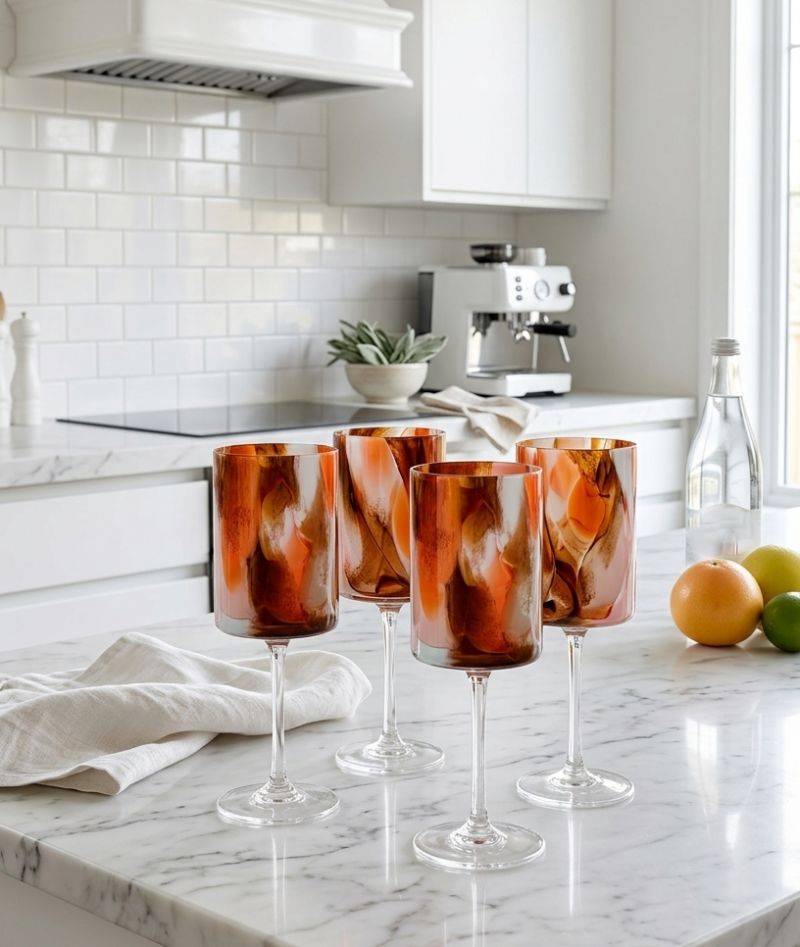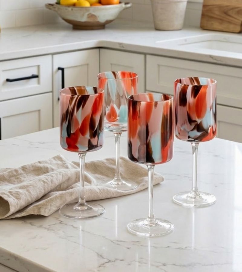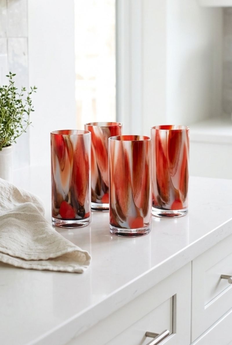 This Le Morgan 16-piece Marble Earth glassware collection is a bold celebration of colour and texture, featuring a striking marble design. With vibrant swirls of warm rust, deep amber and cool turquoise, each piece serves as a functional work of art. This comprehensive set, containing both elegant long-stemmed glasses and versatile tumblers is designed to bring a soulful, artisanal energy to your dining table.